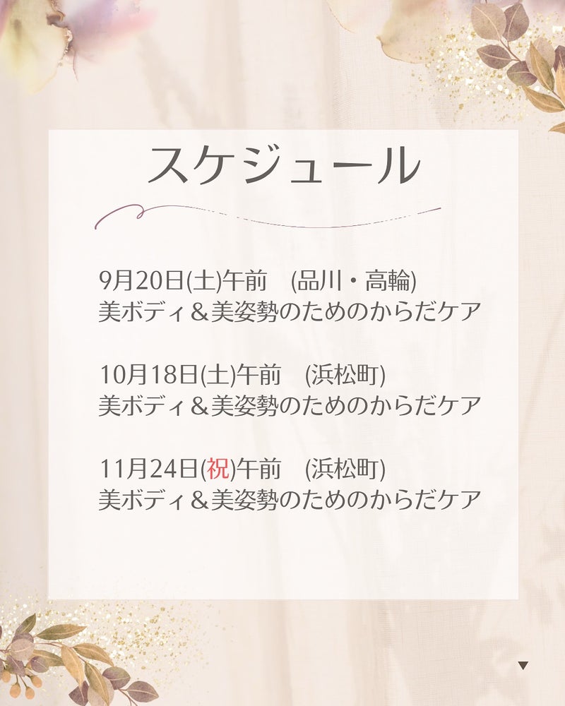 持ち物:ゆったりした動きやすい服装(ジーンズ、スキニーパンツ不可)、輪っかタオル、水分補給用の飲料水
